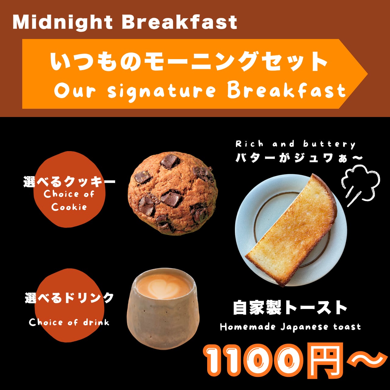 バタートースト、ドリンク、クッキーの3点セットでどうぞ◎